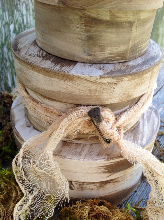 Primitive Distressed Shaker Box Set of 3 with Aged Cheese Cloth Tie ~~ $19.00 USD